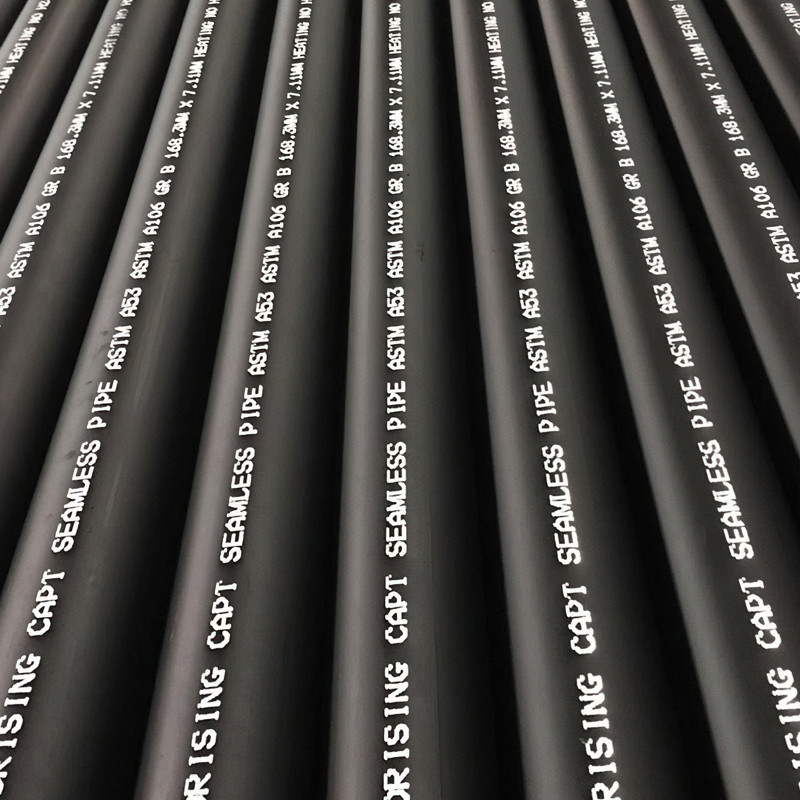 Carbon Seamless Steel pipe Standards&Grade: ASTM A106 GR.B/ASME SA106 GR.B/API 5L GR.B OD :1/2"-24" WT :STD,SCH40,XS,SCH80 Length: 12m maximum,fixed length or random length Process Method: hot finish and hot expand and cold draw Surface Treatment: Varnished, 3PE, 3PP, FBE, Galvanized etc coated. Package: Pipe's external surface painted with mill's black lacquer,beveled ends(OD≥2"),plain ends (OD<2"),both ends protected with plastic caps,bundled with metal strips, without wooden/pallet packages. Quantity tolerance: -0/+10% per size,length tolerance for fixed length pipe:-0/+50m Stenciling/Marking: As per customer's requirement Time of shipment:Delivery within 45 days after receiving advance payment or vaild L/C from the bank. Usage: Oil, gas, water transportation, piling, chemical&construction use etc. Port of loading: Tianjing Seaport, China Test Chemical Component Analysis, Mechanical Properties (Ultimate tensile strength, Yield strength, Elongation), Technical Properties (Flattening Test, Bending Test, Blow Test, Impact Test), Exterior Size Inspection, hydraulic Test. Mill Test Certificate: as per EN 10204/3.1B Qualified certification: API5L API5CT ISO9001